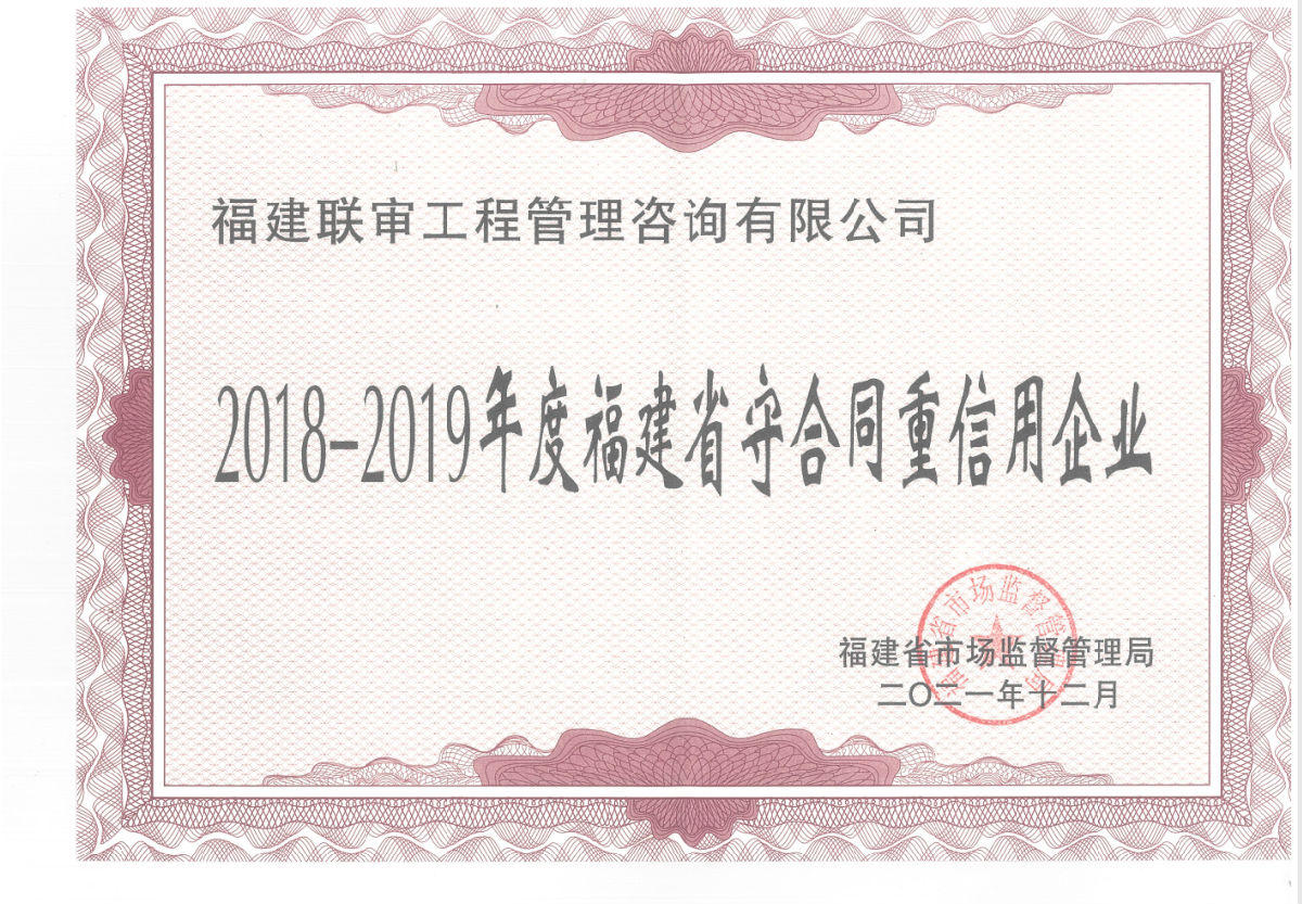 作者:小編時(shí)間:2022-01-20喜報(bào)福建聯(lián)審再度獲評(píng)“福建省守合同重信用企業(yè)”榮譽(yù)稱號(hào) 近日,福建聯(lián)審工程管理咨詢有限公司被福建省市場(chǎng)監(jiān)督管理局授予“2018-2019年度福建省守合同重信用企業(yè)”。這是公司守法經(jīng)營(yíng),深入推動(dòng)誠(chéng)信建設(shè)、堅(jiān)持誠(chéng)信履約所取得的重要成果,更是省政府對(duì)企業(yè)誠(chéng)信經(jīng)營(yíng)予以充分認(rèn)可的標(biāo)志。 福建聯(lián)審自成立以來(lái)......